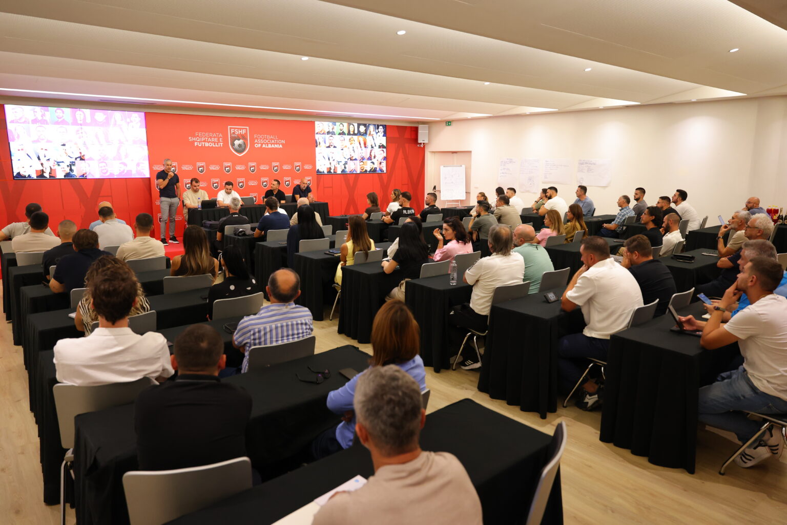 Gjatë masterclass-it pati diskutime dhe ndarje eksperiencash mes trajnerëve dhe stafit të Kombëtares A mbi aspekte të ndryshme të punës.