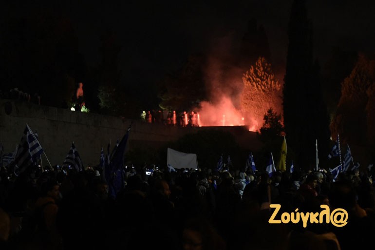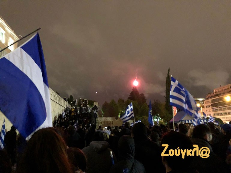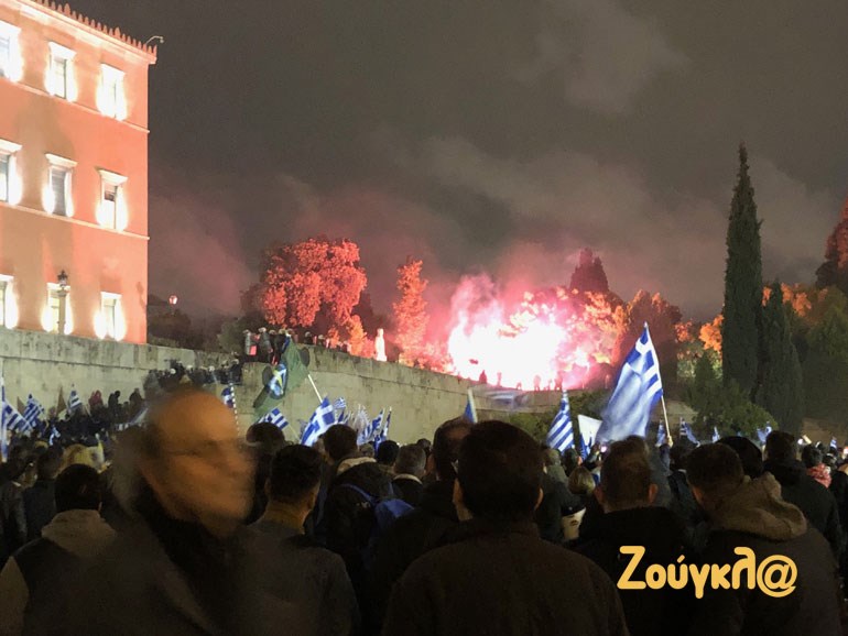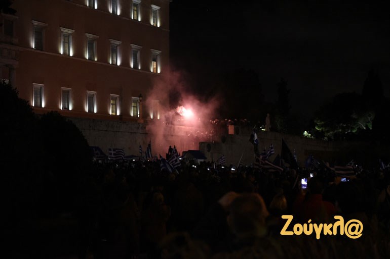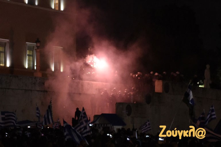 Opozita akuzon qeverinë për tradhëti kombëtare. Ndërsa kryeministri Tsipras akuzon opozitën se ka nxitur grupet ekstremiste të kercenojne deputetët e shumicës duke iu ushtruar atyre presion jashte banesave. Mediat greke raportojnë se ekstremistët kanë dëmtuar shtëpitë e 3 deputetëve të partisë SYRIZA. Protestat do të vijojnë edhe nesër paradite, kohë kur pritet që parlamenti të votojë për ratifikimin e marrëveshjes me Maqedoninë.