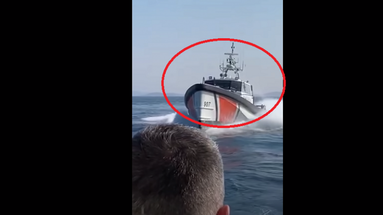 Mediat greke kanë publikuar pamjet nga momenti ku anija turke i afrohet rojës bregdetare greke, duke kaluar vetëm pak metra larg tyre. Ndërkohë turqit pretendojnë se ky veprim u bë pasi grekët kishin kaluar në ujërat e tyre territorial.