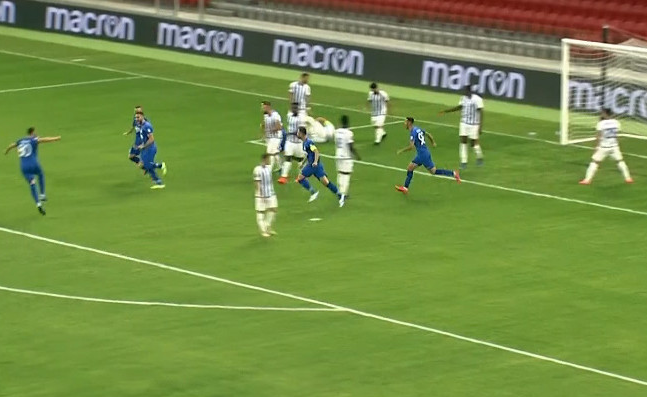 Fantastik Rustem Hoxha, i cili pas një krosimi perfekt të marrë nga goditja e këndit ia ka dalë ta dërgojë topin në rrjetë dhe të kalojë në avantazh ekipin e Martinit në minutën e 2.