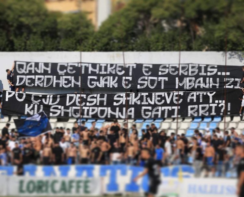 Kanë qenë shumë të pakët tifozët mesditen e sotme në staiduin “Selman Stërmasi” ku u zhvilluar ndeshja e kampionatit mes Tiranës dhe Laçit e cila përfundoi me shifrat 0-3 për kurbinasit. Megjithatë më tepër se për ndeshjen dhe për të mbështetur skuadrën e tyre që sërish u mund tifozët bardheblu i kanë dedikuar një mesazh serbëve të vrarë në Veriun e Kososvës. “Qajnë çetnikët e Serbisë…derdhën gjak e sot mbajnë zi, po ç’ju desh shkijeve aty…ku shqiponja gati rri!”