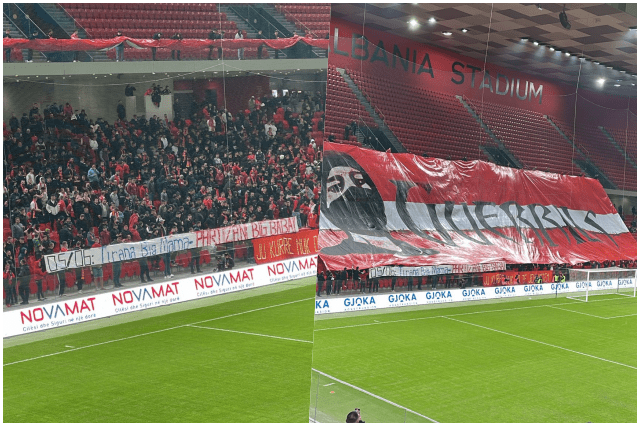 Tifozët e të kuqve janë kundërpërgjigjur me një banderolë, të shfaqur në shkallët e stadiumit “Air Albania”.