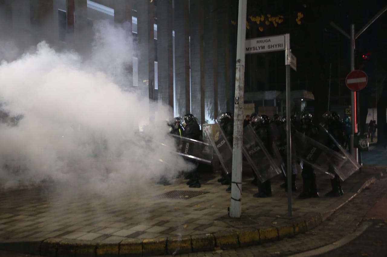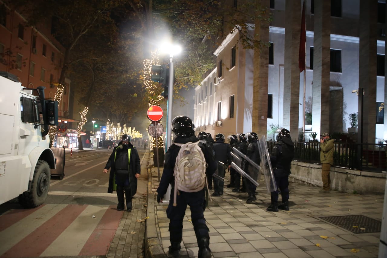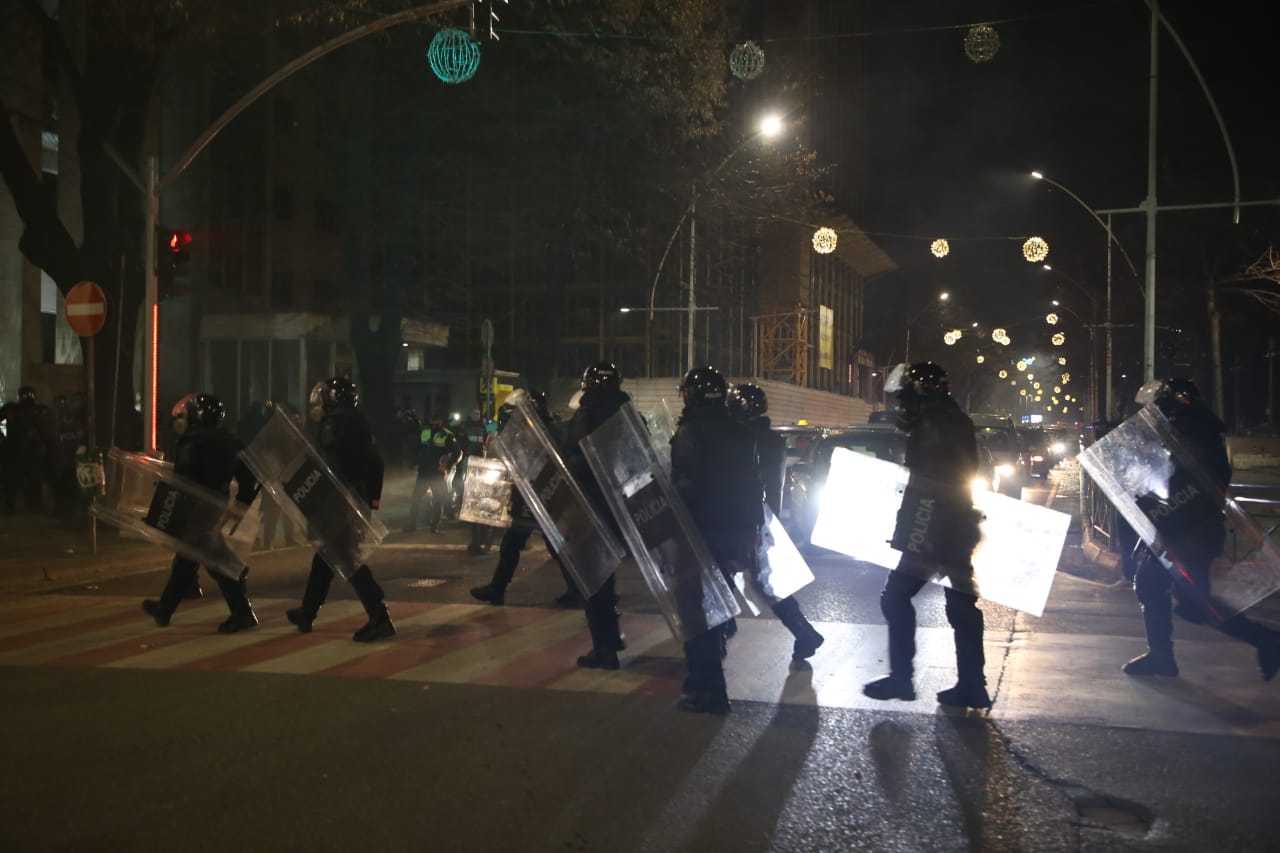Nga ana tjetër e medaljes është vendosur policia, gardhe me efektivë të shumtë, të mbrojtur me skafandra dhe kundra gaz që gjurmojnë hap pas hapi protestuesit nëpër gjithë rrugicat e kryeqytetit, për të mos i lejuar t’u afrohen institucioneve.
