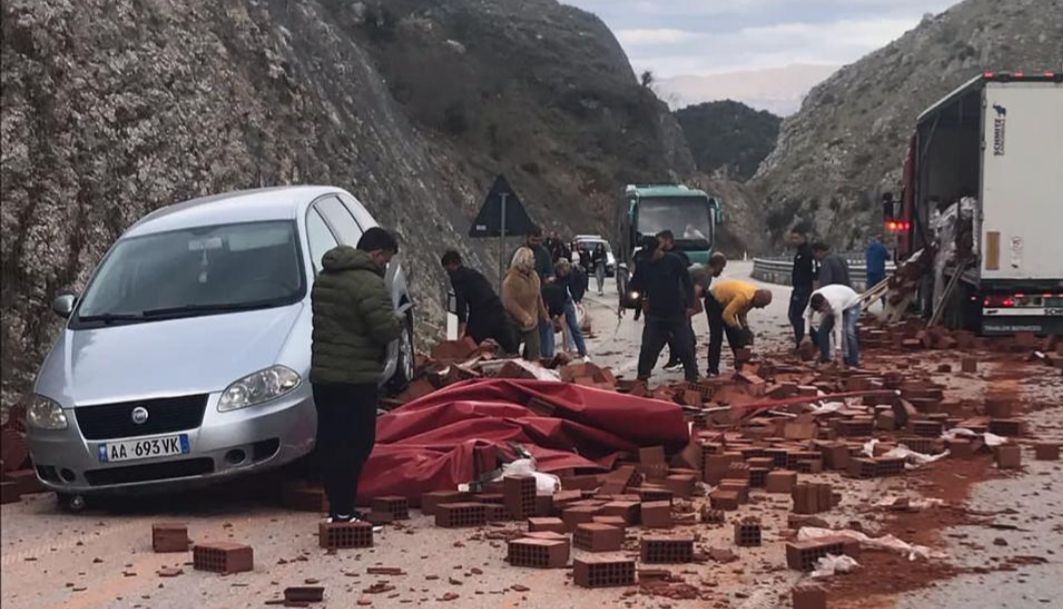 Tullat të cilat ishin ngarkuar në një kamion në lëvizje kanë rënë në rrugë duke penguar më pas dhe makinën që vinte në sensin e kundërt.