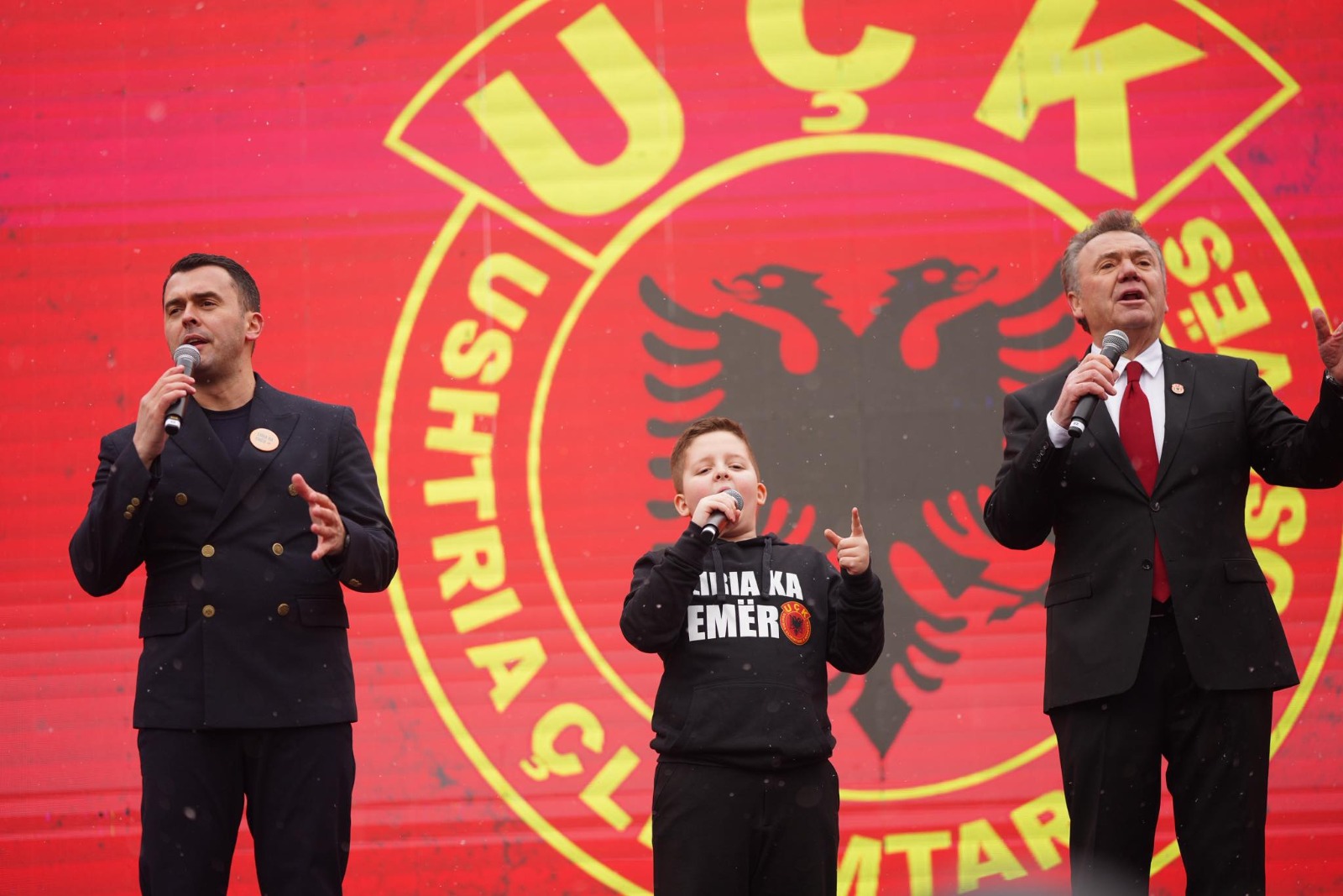 Këngëtari i njohur Ilir Shaqiri është ngjitur në skenën e protestës në Prishtinë bashkë me djalin, Korabin, dhe nipin.