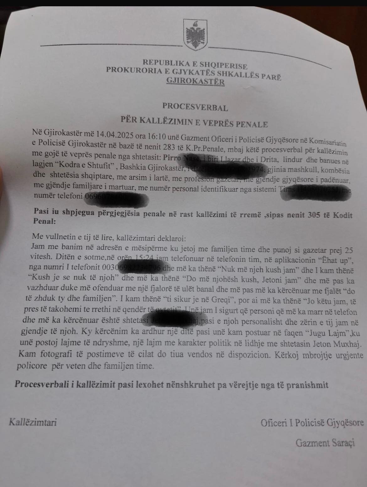 Frika nga ndëshkimi me votë i ka çuar pushtetarët të përdorin shantazhin dhe kërcënimin, madje edhe ndaj gazetarëve. Dje, gazetari i mirënjohur P.N është kërcënuar me jetën e tij dhe të familjarëve nga persona të lidhur me fushatën elektorale të Partisë Socialiste. Kjo ngjarje e rëndë ka ndodhur për arsye thjesht politike. P.N e ka bërë denoncimin pranë organeve ligjzbatuese, të cilat u bëj thirrje publike të marrin menjëherë të gjitha masat për të garantuar sigurinë e çdo qytetari dhe për të ndëshkuar kërcënimet dhe autorët pas tyre. Askush nuk duhet të kërcënohet. Liria e medias dhe siguria e qytetarëve janë vija të kuqe.