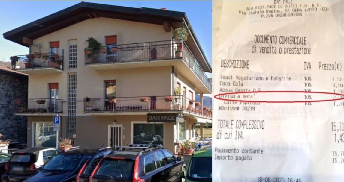 Një turist u shokua kur pa faturën e një restrant buzë liqenit të Komos në Itali. Atij ishte shkruar në faturë plus dy euro për të prerë sanduiçin përgjysmë. Turisti kishte porositur një sanduiç vegjetarian me patate të skuqura në Bar Pace në Gera Lario, në skajin verior të liqenit. Pasi hëngri ushqimin pa mish, të cilin e ndau me një mik, ai u trondit kur gjeti tarifën e padëshiruar në llogarinë e tij. Turisti nuk u ankua te menaxheri i restorantit, por shpejtoi të postonte një koment negativ në TripAdvisor. Ai i pakënaqur shpjegoi se ai kërkoi ta ndante sanduiçin me mikun e tij, por kurrë nuk kërkoi që të ndahej në gjysmë. “E pabesueshme, por e vërtetë”, shkruan burri një foto të faturës në TripAdvisor