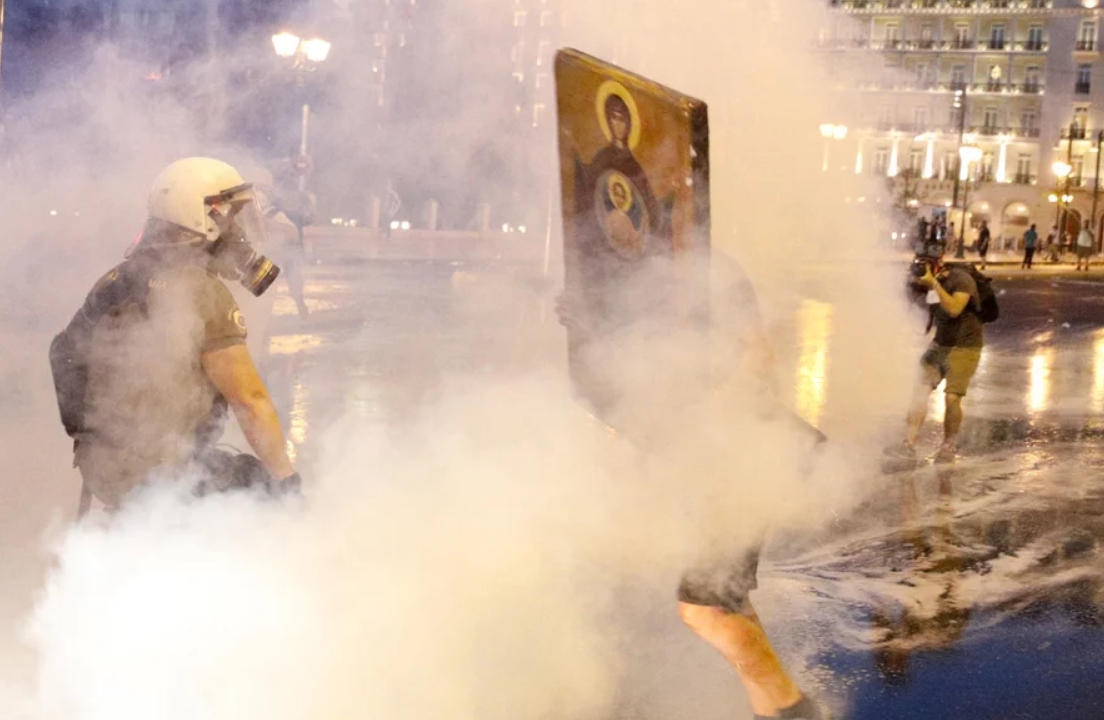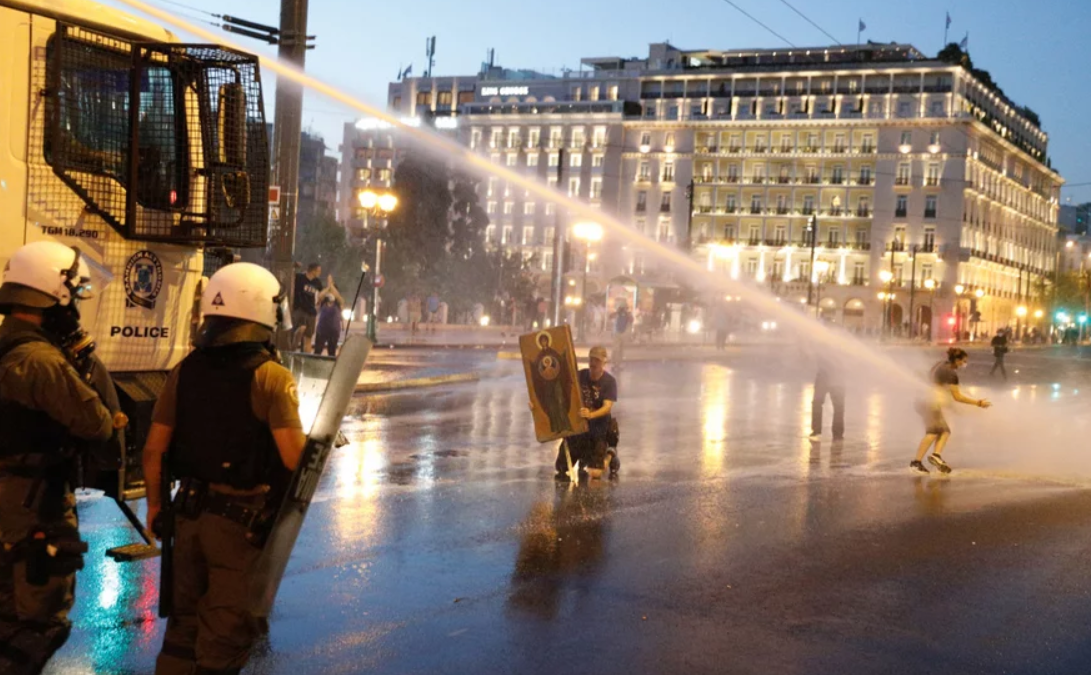 Protesta po mbahet në sheshin Sindagma të Greqisë. Forcat e Rendit janë detyruar të përdorin pompat e ujit me presion dhe gaz lotsjellës kundër protestuesve, ndërsa këta të fundit kanë goditur me gurë dhe molotov kundrejt tyre. Policia ka shoqëruar në komisariat disa persona ndërsa po boshatisin sheshin Sindagma. Kujtojmë se mijëra grekët protestojnë kundër vaksinimit të detyruar dhe heqjen e kufizimeve të covidit në vend.