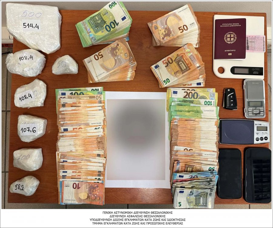 Policia greke ka vënë në pranga një shqiptar me precedentë të shumtë penalë dhe të arratisur nga një burg në Francë. Ai është kapur bashkë me një shtetas grek duke transportuar mbi 1 kg kokainë.