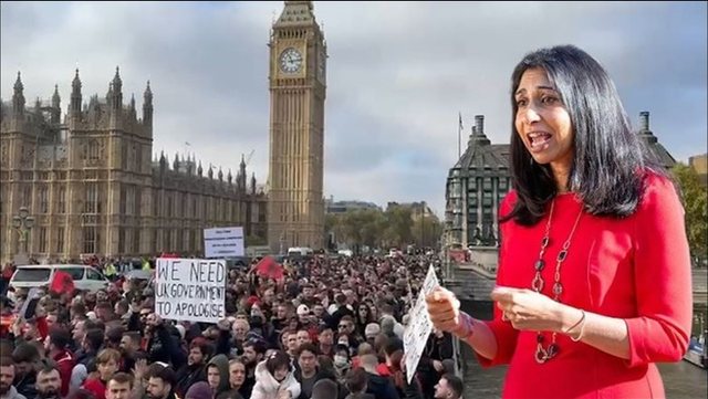 Shkarkimin e Suella Braverman e kërkuan edhe shumë emigrantë shqiptarë që jetonin në Britaninë e Madhe pikërisht për gjuhën e saj raciste, pasi zhvilluan një protestë në Londër.