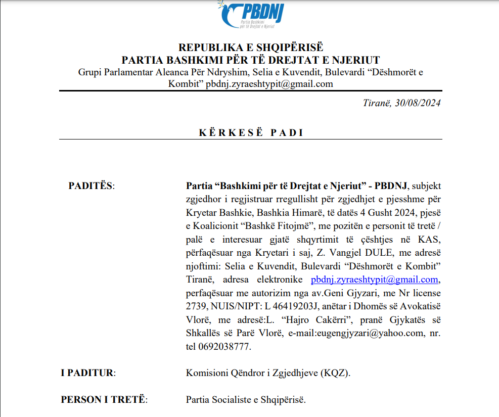 Veç Partisë Demokratike që ankimoi në Kolegjin Zgjedhor zgjedhjet e 4 gushtit në Himarë, edhe Partia Bashkimi për të Drejtat e Njeriut ka bërë një kërkesë padi në Kolegjin Zgjedhor, ku mes të tjerash kërkon pavlefshmëri të zgjedhjeve në të gjitha qendrat e votimit. Objekti i padisë është si më poshtë.