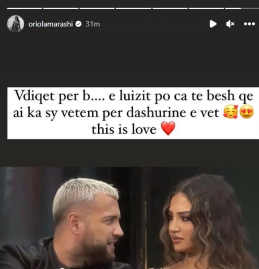 Me anë të një postimi në “Instastory” Oriola lë të kuptohet se ajo përkrah çiftin e Big Brother Vip.
