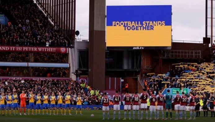 Fundjavën e kaluar, klubet e Premier League-s treguan solidaritet me Ukrainën pasi kapitenët mbanin shirita të veçantë me ngjyrat e flamurit ukrainas, ndërsa ekranet e stadiumeve shfaqnin sloganin “Futbolli na bashkon”.