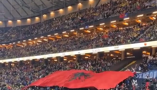 Afro 6 mijë tifozë shqiptarë nga Kosova, ishin të pranishëm në stadiumin ‘Fiends Arena’, për të ndjekur nga shkallët e stadiumit këtë përballja, teksa para startit, të takimit, në tribunën e tifozëve të Kosovës,