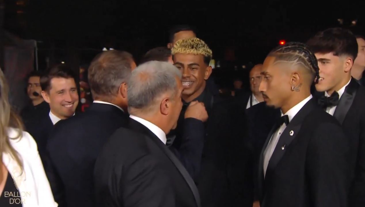 Më pas delegacioni i Barçës u nis drejt sallës, por i pritur jo edhe aq ngrohtësisht nga një pjesë e tifozëve që ishin aty. Sigurisht kontestimi ishte për faktin se Jamal rivalizonte me idhullin e francezëve, Ousman Dembele, për trofeun më prestigjioz, atë të “Topit të Artë” .