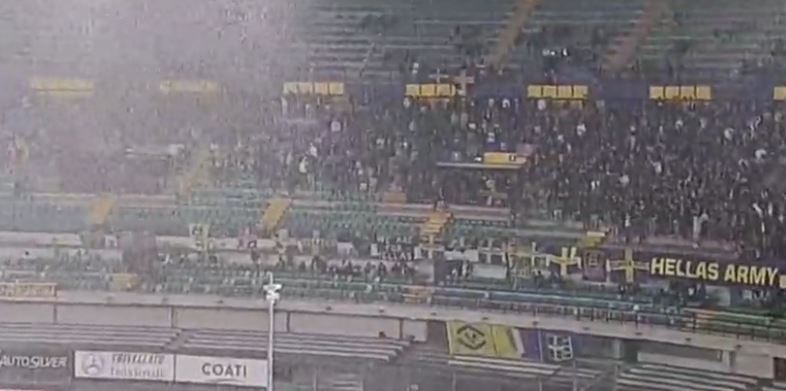 Në stadiumin “Bentegodi” nisi një shi i papritur, çka detyroi arbitrin Calzavara t’i dërgojë që të gjithë në dhomat e zhveshjes.