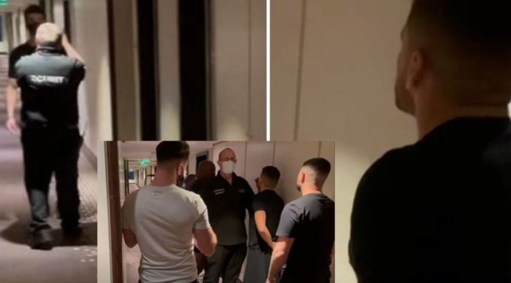 Përballja e programuar për t’u zhvilluar në mitikun “Wembley” ka nisur me një incident të papritur, në hollin e hotelit ku Marku po qëndron. Shqiptari ka pasur një moment tensioni me boksierin Macaulay McGowan dhe është dashur dhe ndërhyrja e sigurimit për t’i ndarë ata.