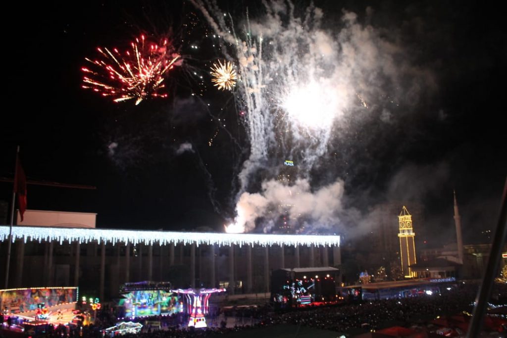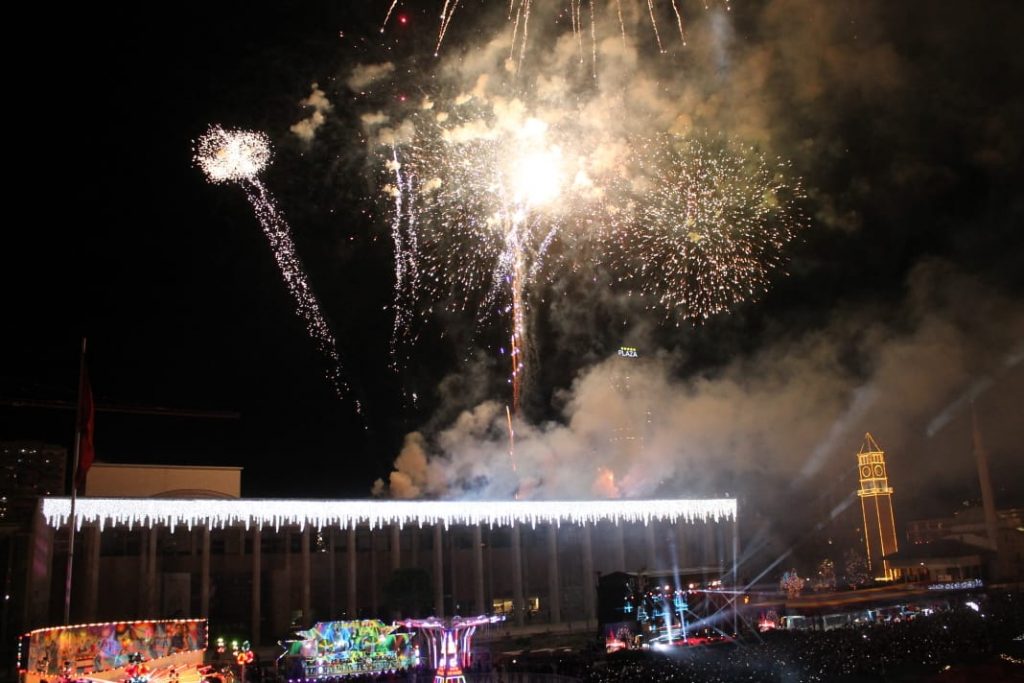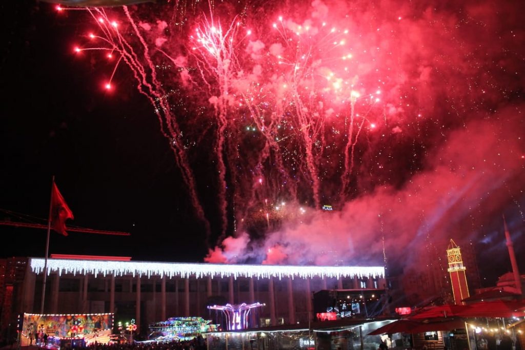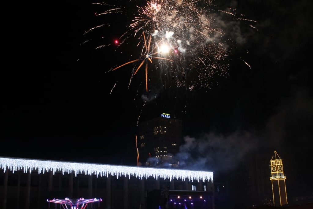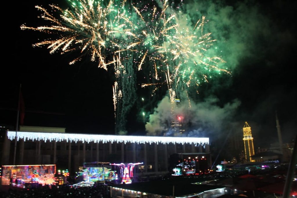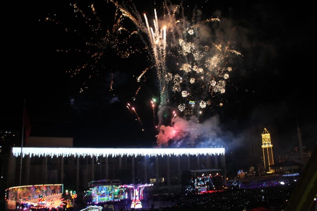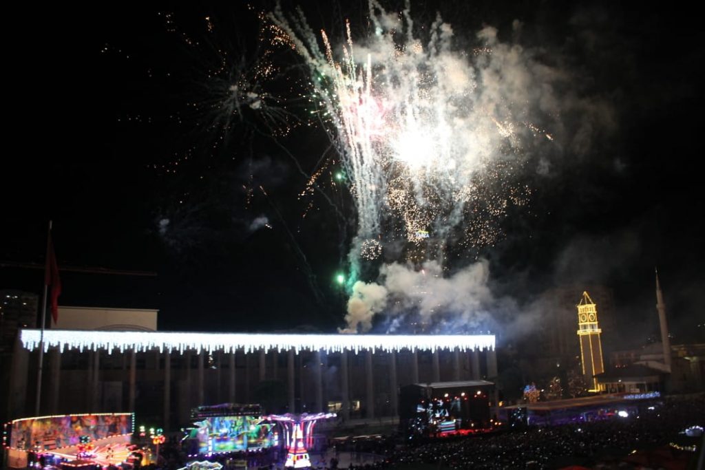 Ndërrimi i viteve në Tiranë ishte një moment magjik. Qielli mbi Sheshin ‘Skënderbej’ u ndricua nga mijëra fishekzjarre. Spektali ishte organizuar prej Bashkisë Tiranë. Këtë vit për herë të parë u ndalua shitja e fishekzjarrëve për qytetarët. E gjithë festa ishte përqëndruar në shesh. Shihni më poshtë fotot që sjell LSA.