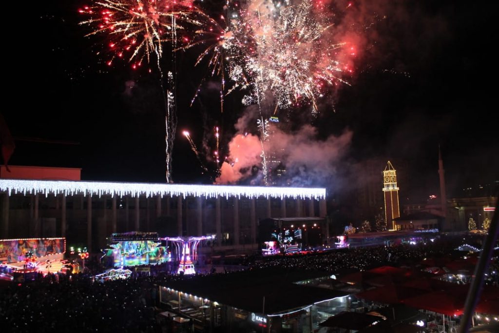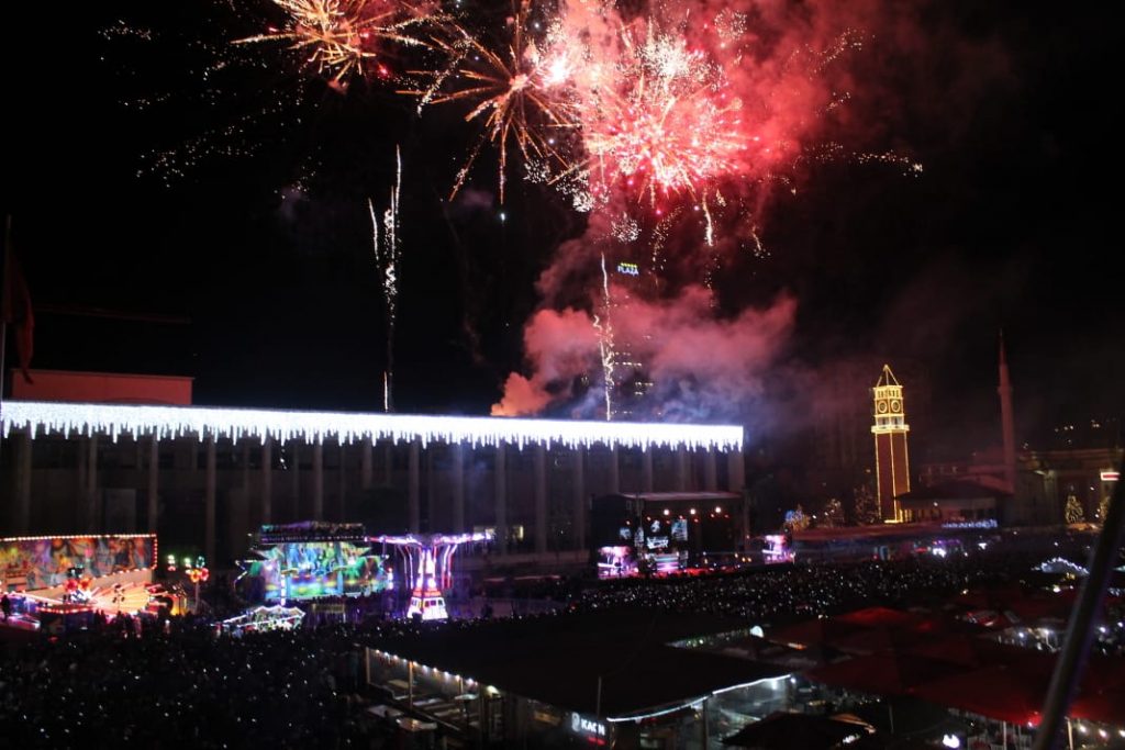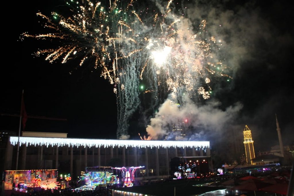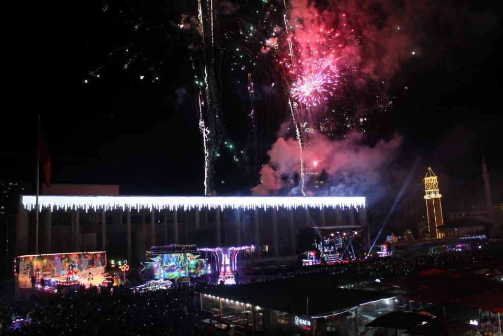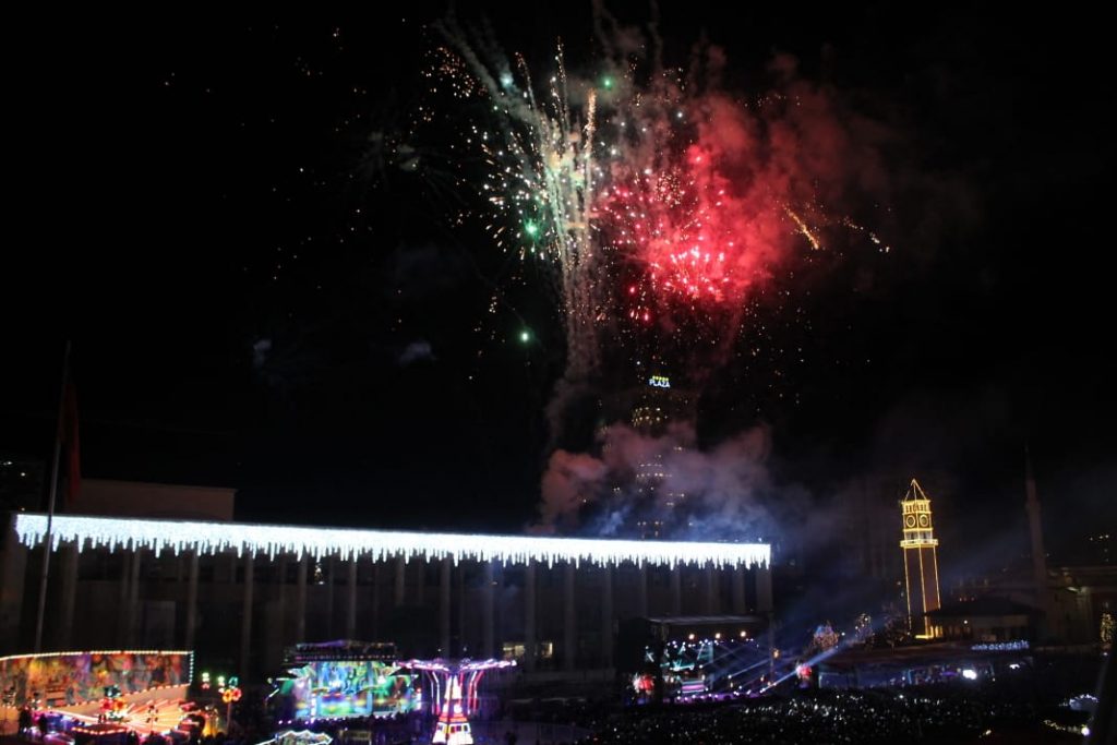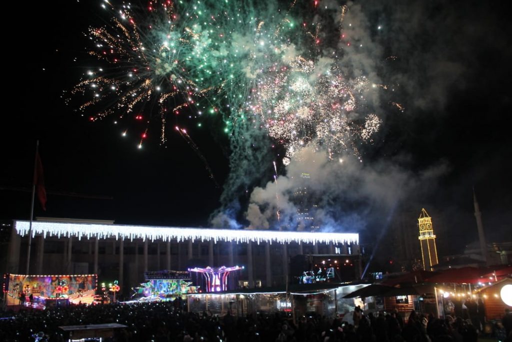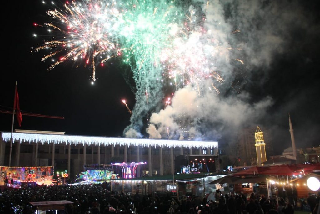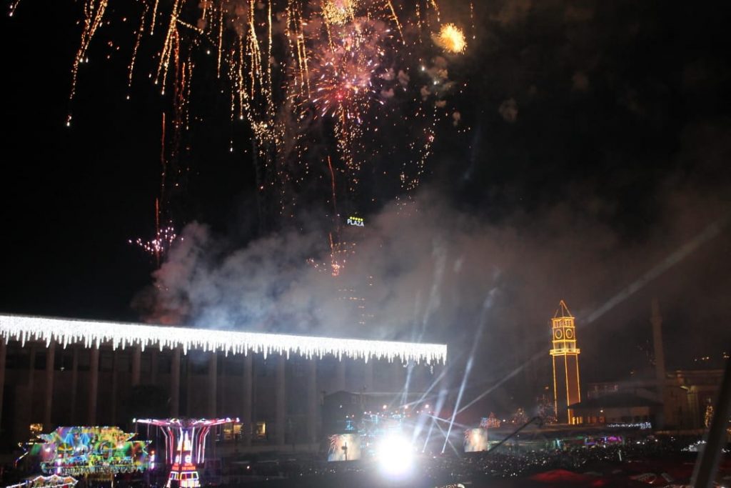 Ndërrimi i viteve në Tiranë ishte një moment magjik. Qielli mbi Sheshin ‘Skënderbej’ u ndricua nga mijëra fishekzjarre. Spektali ishte organizuar prej Bashkisë Tiranë. Këtë vit për herë të parë u ndalua shitja e fishekzjarrëve për qytetarët. E gjithë festa ishte përqëndruar në shesh. Shihni më poshtë fotot që sjell LSA.