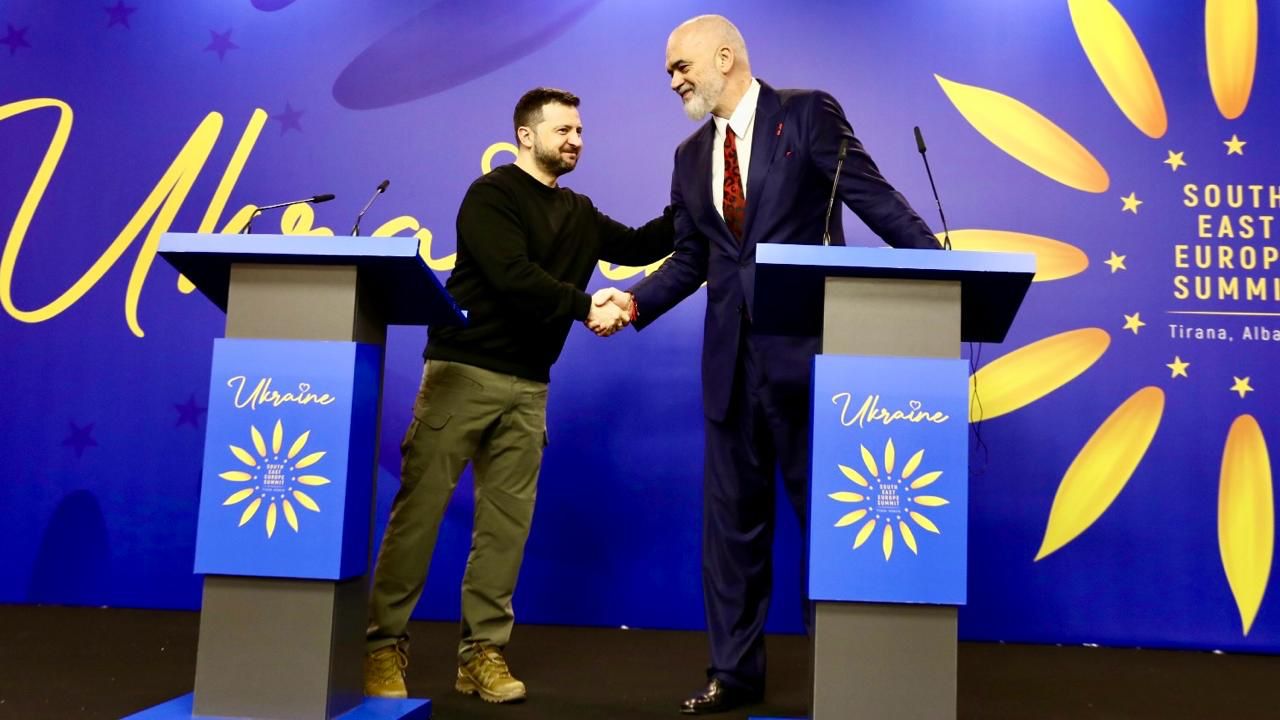 Presidenti Volodymyr Zelensky ka falenderuar popullin shqiptar për mbështetjen që po i jep Ukrainës. Gjatë konferencës për mediat me kryeministrin Edi Rama, Zelensky ka deklaruar se ata duhet që të bashkëpunjnë dhe të prodhojnë armë. Po ashtu ka theksuar se duhet që të bëhet çdo gjë që munden që të mos kenë vonesa.